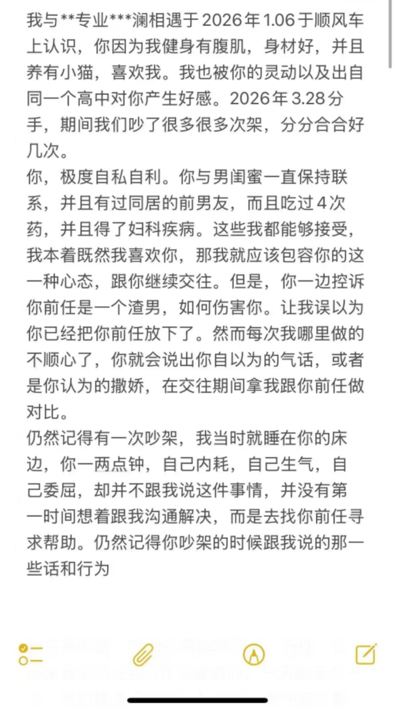 2026-04-08 广场 3 评论 2 喜欢 分享 嘎嘎 这个人很懒,还没有简介 查看TA的全部内容 +关注 123校园圈 去发现更多有趣内容 微信扫码打开123校园圈小程序 体验更多「123校园圈」新功能 评论 3 微信用户_62 2026-04-08 2 是谁物质我不说了 。记得清清楚楚啊,人跟你出去玩还1500A呢这咋物质自私了 微信用户_119 2026-04-08 1 就是就是,女生花自己的钱他也要生气 微信用户_119 2026-04-08 2 全篇都在讲女生的一些私密事,还有一些压根不算什么问题并且与你无关的小毛病,你想让人家合你的意,你也得有那个实力啊,自己也是半斤八两还对别人要求那么高 我也来讲两句